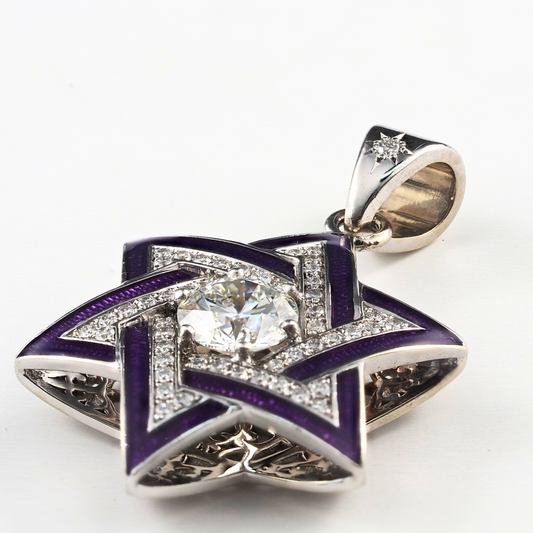 Pendant David Star 14KW Gold, Natural Diamonds and Center Lab Grown Diamond, Enamel