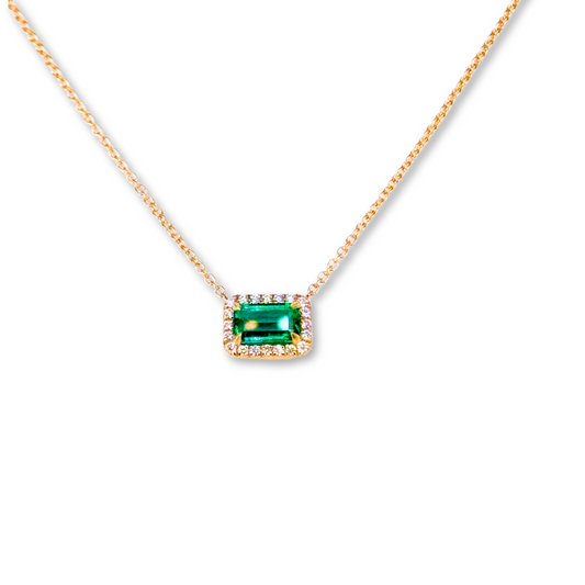 14K Yellow Gold Diamonds Emerald necklace small