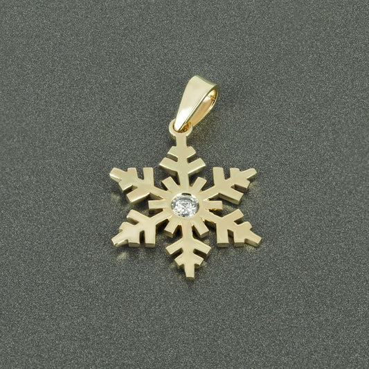 Gold Pendant Snowflake with Diamonds Christmas Gift