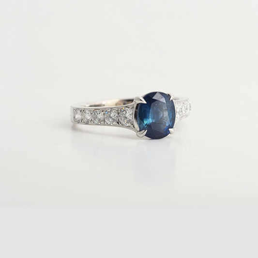 Sapphire Ring 14K White Gold with Natural Diamonds