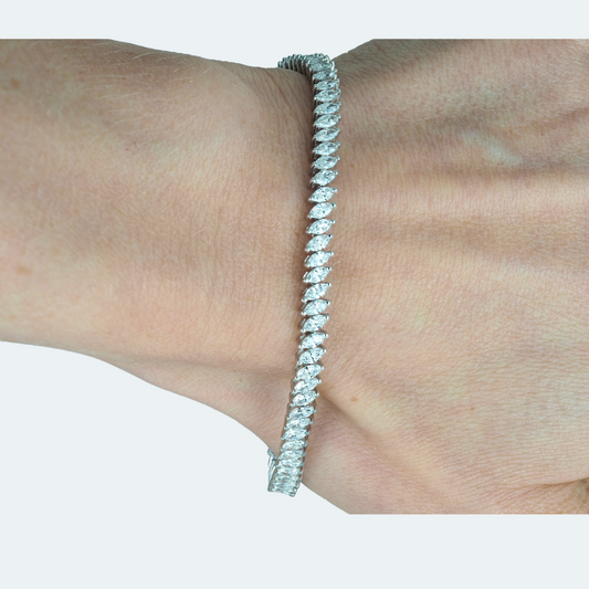 Tennis Bracelet Marquise cut 4,7 ct DEF Lab Grown Diamonds 14KW Gold