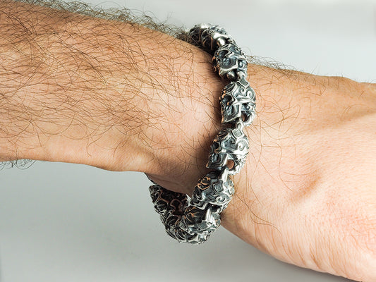 Bracelet Bangle Sterling Silver 925 for man Gothic Biker