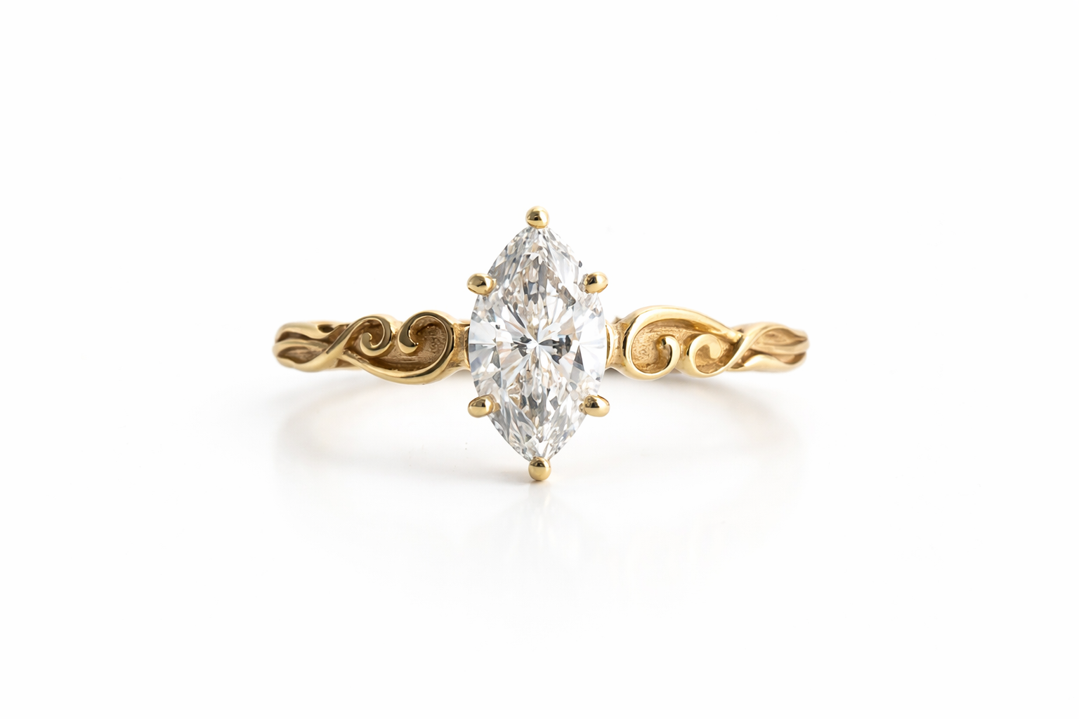 - Centerpiece: Lab-Grown Diamond, Marquise Cut, 1.00 ct